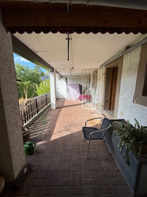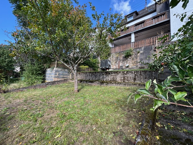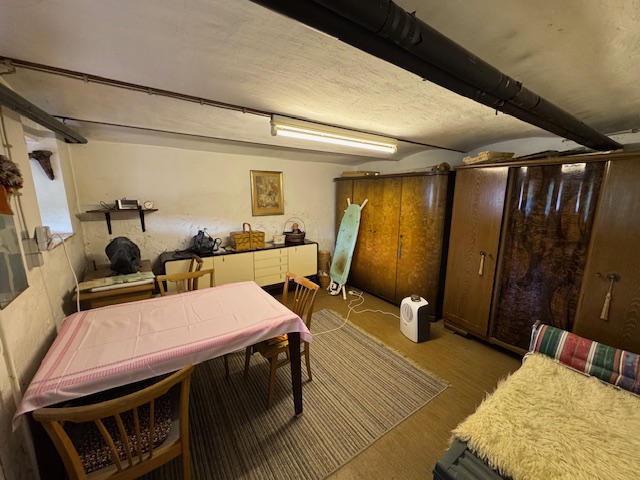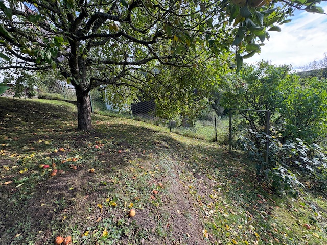 Das Haus ist vollständig unterkellert. Von dieser Ebene aus gelangen Sie direkt zur überdachten Terrasse, die Ihnen zusätzlichen Wohnkomfort und entspannte Stunden im Freien ermöglicht. Das rund 410 m² große Grundstück ist als terrassierte Grünfläche angelegt und wird von einem alten, gewachsenen Apfelbaum geprägt.