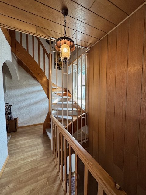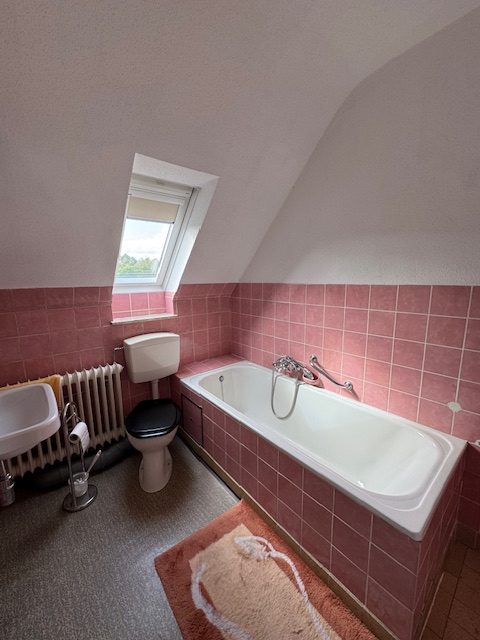 Über eine gepflegte Holztreppe mit Handlauf erreichen Sie das Obergeschoss, in dem Ihnen drei Schlafzimmer, ein Etagenflur sowie ein weiteres Badezimmer zur Verfügung stehen. Anders als bei vielen vergleichbaren Objekten wurde das Dachgeschoss nicht durch eine Ausziehleiter erschlossen, sondern durch eine vollwertige Holztreppe integriert. Dort finden Sie ein gemütliches Jugendzimmer sowie ein kleines Gästezimmer – ideal als private Rückzugsorte oder zur individuellen Nutzung.