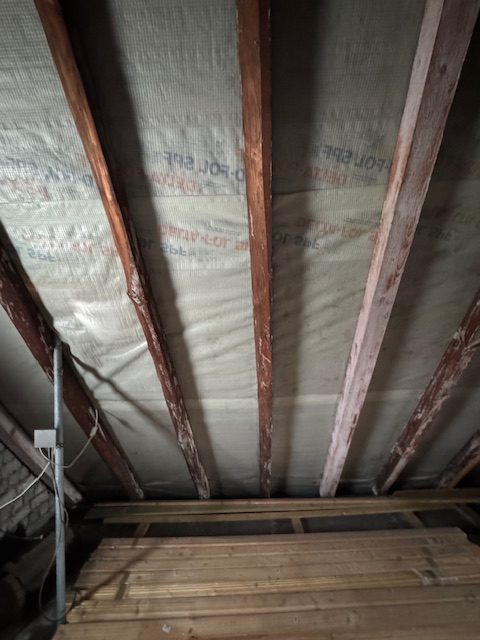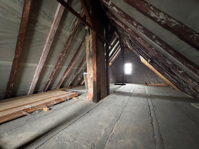 Der Dachboden als Speicherboden ausgebildet, zwischen den Sparren ist eine Unterspannfolie vorhanden