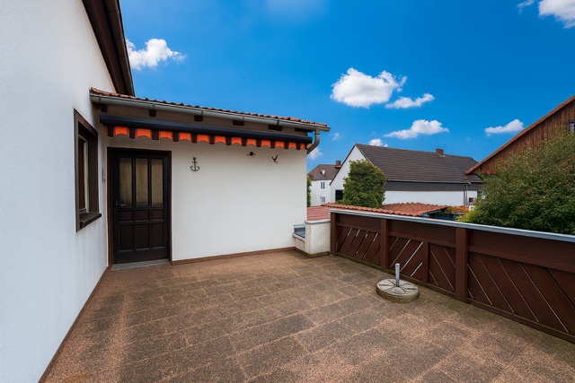 Seitlich des Hauses wurde 1976 eine großzügige Garage mit etwa 10 Metern Länge errichtet, die Platz für zwei Fahrzeuge bietet. Praktisch: Von hier gelangen Sie direkt in den Garten sowie ins Kellergeschoss. Der Hauseingangsbereich wurde 1998 modernisiert und um eine zusätzliche Treppe mit darunterliegendem Stauraum ergänzt. Nicht zu vergessen ist die darüber befindliche Terrasse.