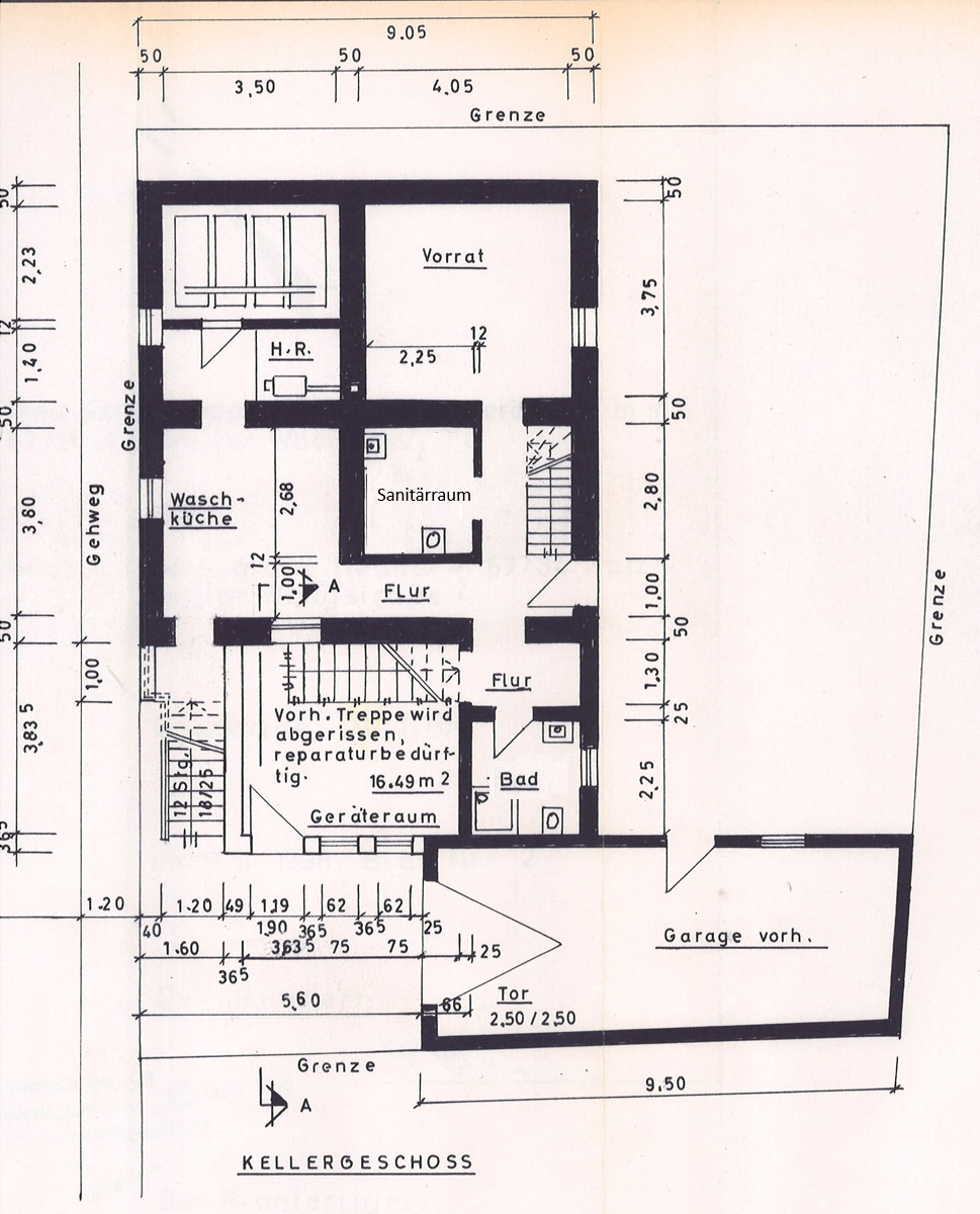 Sanitärraum (1960er Jahre) im KG mit: