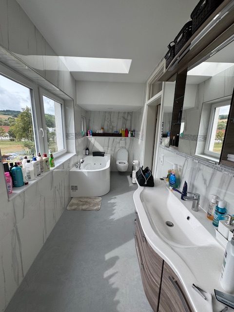• Lichtdurchflutetes Badezimmer mit Whirlpoolwanne – ein echtes Highlight!