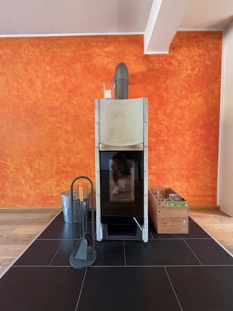 Ein besonderes Wohlfühl-Extra bietet der drehbare Kaminofen der Firma Tonwerk (Baujahr 2009), der für gemütliche Stunden sorgt. Die Außenfassade wurde zuletzt 2014 erneuert und rundet den gepflegten Gesamteindruck harmonisch ab.
