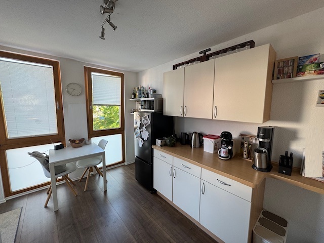 Die separate Küche ist mit einer modernen Einbauküche ausgestattet und bietet Platz für einen kleinen Frühstücksbereich. Ergänzt wird das Raumangebot durch ein ruhiges Schlafzimmer sowie ein gepflegtes Duschbad mit Tageslicht.