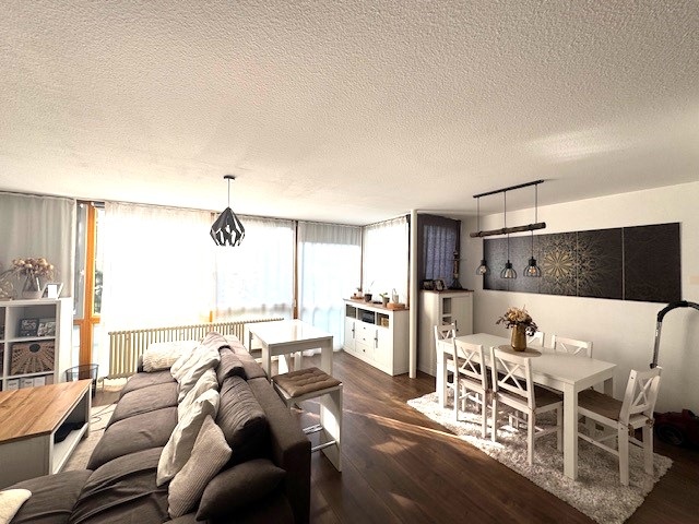 Die Wohnung befindet sich im 1. Obergeschoss eines ansprechenden Mehrparteienhauses. Mittelpunkt ist der helle und großzügige Wohn- und Essbereich mit großen Panoramafenstern, die einen weiten Blick über die Dächer der Stadt sowie auf eine angrenzende Parkanlage freigeben. Ein gemütlicher Balkon zur Vorderseite lädt besonders in den Abendstunden zum Verweilen ein und bietet Sonne bis in die späten Stunden – der ideale Ort zum Entspannen nach einem langen Tag.