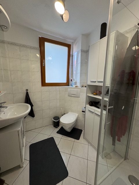 Dusche mit Kabine, Toilette, Waschbecken